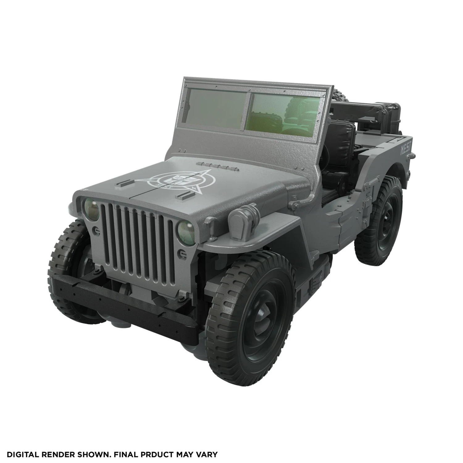 This Studio Series 77 Deluxe Class Transformers: Bumblebee-inspired N.E.S.T. Bumblebee figure converts from robot to licensed Jeep mode in 26 steps. Remove backdrop to showcase N.E.S.T. Bumblebee in the Canyon Attack scene. Re-imagined as a N.E.S.T. Jeep, Bumblebee and the Autobots team up with N.E.S.T. to protect the Allspark from the Decepticons. Pose the figure out with the included blaster accessory and mini figure to create a movie universe-inspired scene!